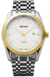Zegarek męski ze srebrną tarczą. Bransoleta wraz z kopertą wykonana została ze stali szlachetnej najwyższej jakości. Pierścień wokół koperty został pozłocony w kolorze żółtego złota. Model ten posiada nierysujące się szkło szafirowe oraz 100m wodoszczelność. Dodatkowo na tarczy znajduje się datownik na godzinie trzeciej.