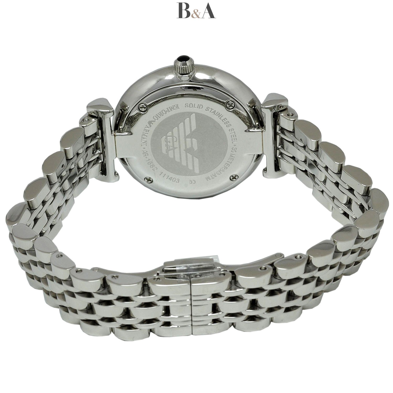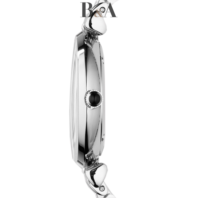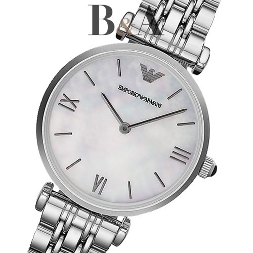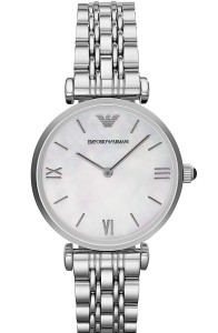 Wyrafinowany styl Retro dla silnej Kobiety ceniącej klasykę. Duża tarcza AR1682 w kolorze masy perłowej z logiem EA i indeksem z cyframi rzymskimi. Koperta i bransoleta z stali nierdzewnej polerowanej. Idealna propozycja dla Pań, które potrzebują zegarka zarówno na wieczorne wyjście w miasto jak i do pracy. Wodoodporność do 50m. Model dostępny w różnych wersjach kolorystycznych tarczy i paska. AR1682