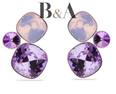 Kolczyki wykonane ze srebra próby 925 oraz ekskluzywnych kryształów Swarovski® crystals w kolorach Violet, Water Opal i Vitrail Light.