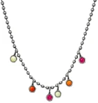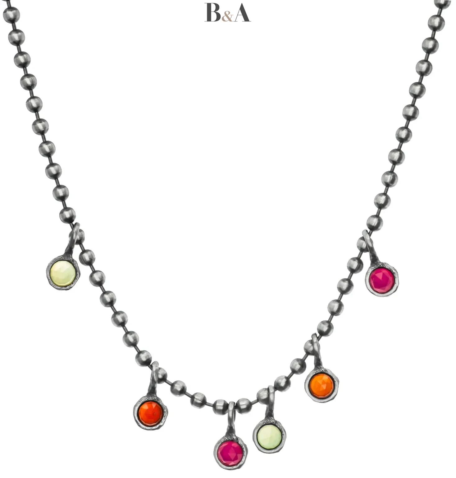 Artystyczny, delikatny naszyjnik został zaprojektowany i wykonany w naszej autorskiej pracowni biżuterii Motyle. Srebrny naszyjnik w klasycznej formie zaskakuje niezwykłą dbałością o wyjątkowe kompozycje kamieni. Kulkowy łańcuszek ozdobiony delikatnymi, naturalnymi kamieniami w organicznych oprawach idealnie tworzy energetyzującą, kolorystyczną kompozycję.