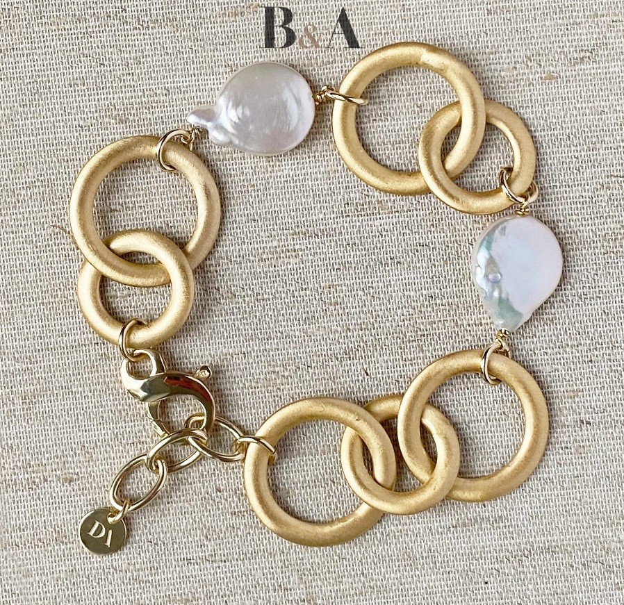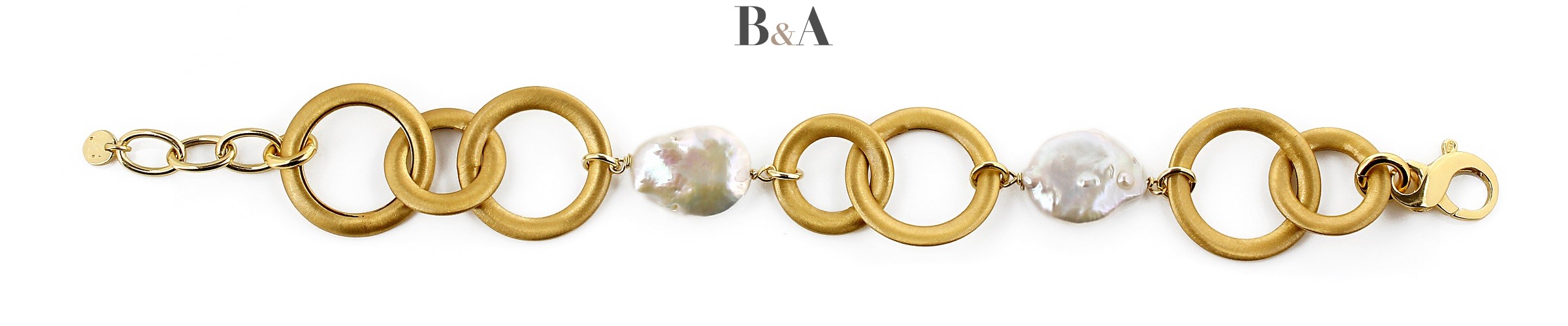 W centrum uwagi znajdują się naturalne perły hodowlane, które symbolizują kobiecość, delikatność i harmonię. Ich mlecznobiały połysk cudownie współgra z pozłacanym wykończeniem. Subtelne elementy dekoracyjne w postaci fasetowanych szklanych kamieni lub cyrkonii nadają bransoletce wyjątkowego, ekskluzywnego charakteru.
