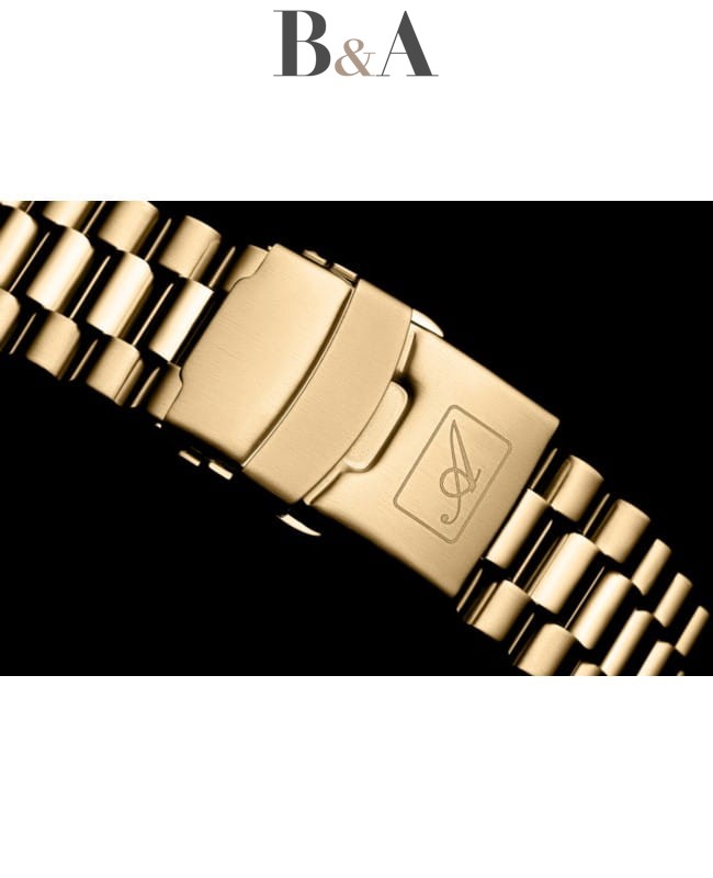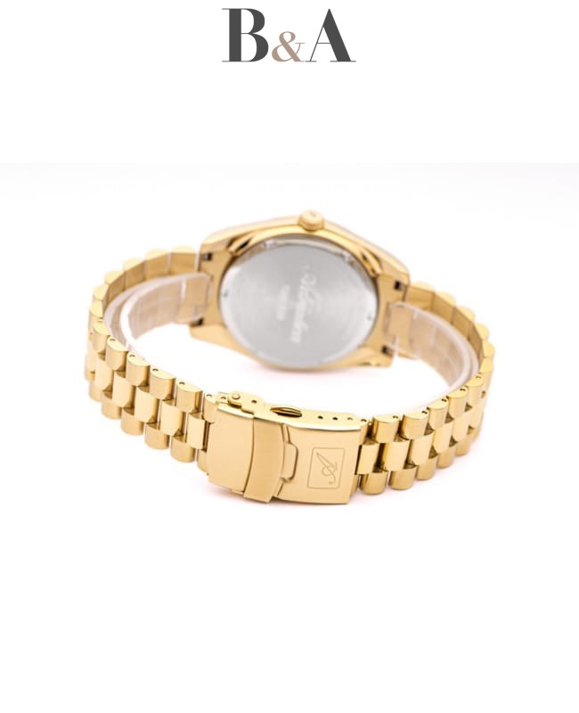 Zegarek posiada bransoletę wykonaną z wysokiej jakości stali szlachetnej (żółte złocenie), która doskonale komponuje się z kopertą, tworząc spójny i elegancki wygląd. Bransoleta jest nie tylko stylowa, ale także wygodna, zapewniając komfort noszenia przez cały dzień. Zapięcie bransolety jest solidne i łatwe w użyciu, co gwarantuje pewność noszenia.