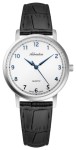 Tarcza zegarka utrzymana jest w klasycznym srebrnym kolorze, z wyraźnymi srebrnymi indeksami godzinowymi i eleganckimi wskazówkami. Minimalistyczny design tarczy podkreśla luksusowy charakter zegarka.