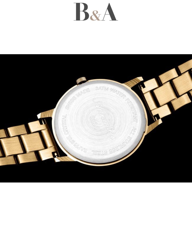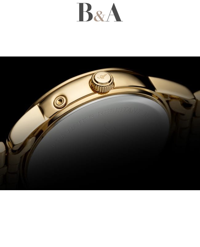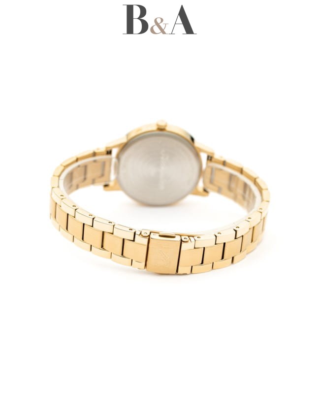 Złota bransoleta wykonana z nierdzewnej stali szlachetnej doskonale komponuje się z kopertą zegarka, tworząc spójny i elegancki wygląd. Bransoleta jest wyposażona w zapięcie z zabezpieczeniem, co zapewnia pewność noszenia i łatwość użytkowania. Szerokość bransolety wynosi 16 mm, co sprawia, że zegarek prezentuje się subtelnie i stylowo na nadgarstku.
