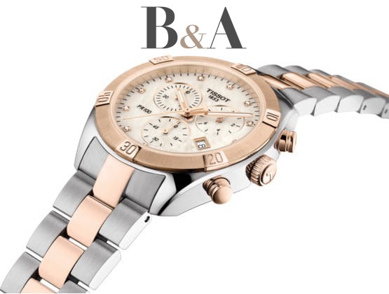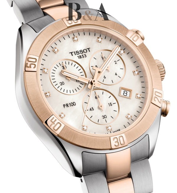 Tissot PR 100 Sport Chic Chrono Lady T101.917.22.116.00 to damski zegarek, który idealnie łączy elegancję i sportowy charakter. Tarcza z masy perłowej, dwukolorowa bransoleta i precyzyjny mechanizm kwarcowy czynią go modelem niezawodnym i wyjątkowo stylowym.