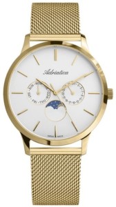 Zegarek męski Adriatica A1274.1113QF ze srebrną tarczą. Koperta wykonana została ze złoconej stali szlachetnej najwyższej jakości, którą połączono z bransoletką typu MESH skóry. Model ten posiada szafirowe nie rysujące się szkło oraz 30m wodoszczelność. Klasyczny i elegancki.
