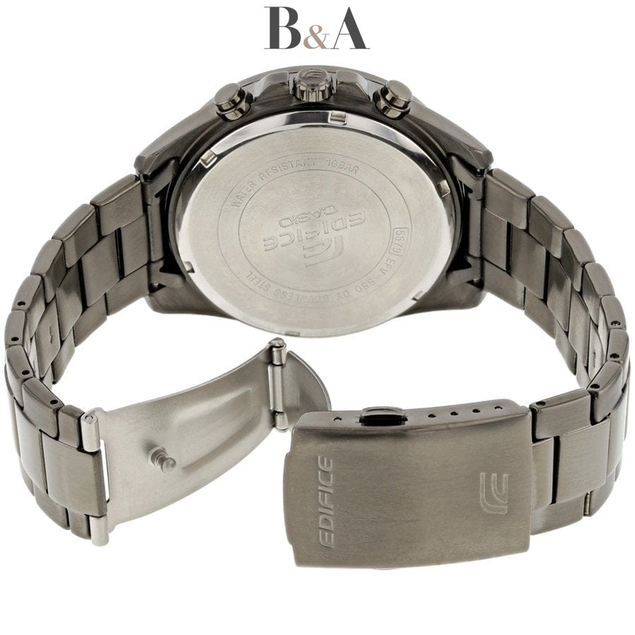 Kolekcja EDIFICE to bardzo szeroki wachlarz zegarków na bransoletach, skórzanych paskach i w zależności od potrzeb wyposażonych m.in. w takie funkcje jak chronograf, datownik, czas światowy i wodoszczelność na poziomie 100m. Od 2014 roku serca fanów kolekcji podbijają modele z systemem Smartphone Link, które umożliwiają połączenie zegarka z telefonem za pośrednictwem systemu Bluetooth 4.0. EDIFICE to także dopieszczony do granic możliwość design. Precyzyjnie wykończone, wykonane z najlepszych materiałów zegarki przykuwają uwagę już przy pierwszym spojrzeniu! EFV-550GY-8AVUEF