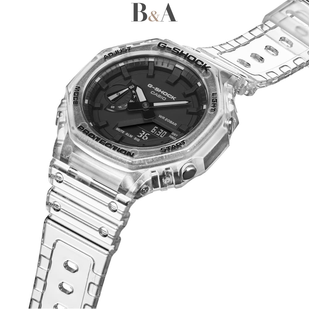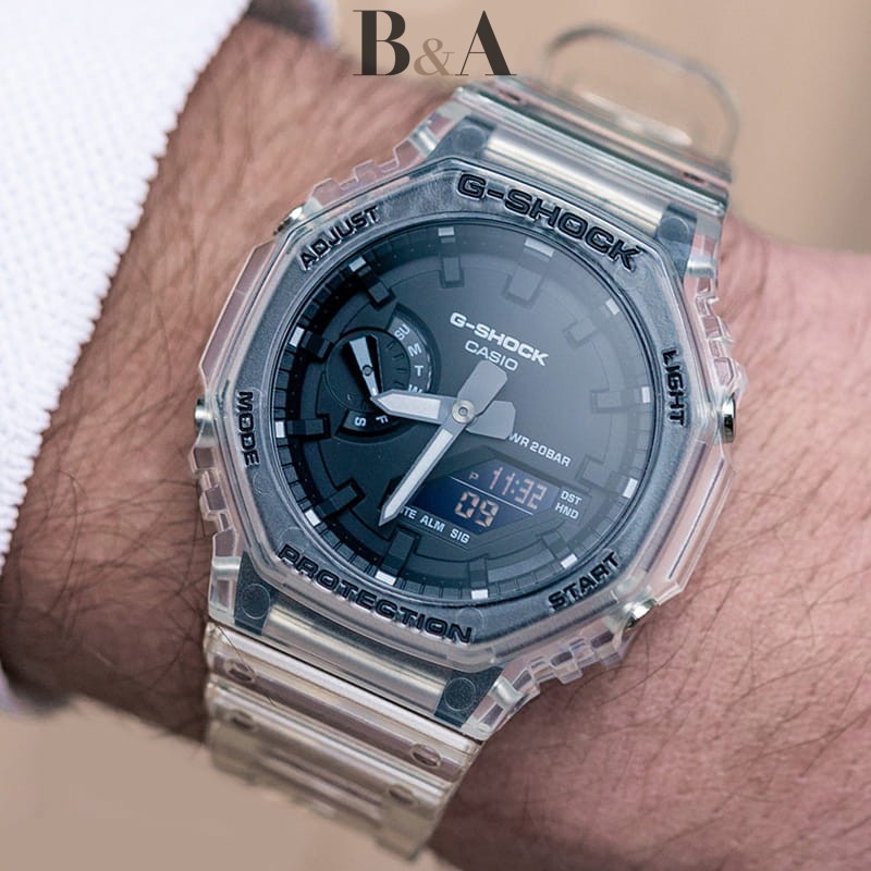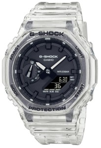Tworząc kolekcje G-SHOCK było stworzenie zegarka, którego nie można zniszczyć. Linia powstała w 1983 roku w wyniku prac nad wstrząsoodpornym zegarkiem który wytrzyma upadek na twardą powierzchnię z wysokości co najmniej 10 metrów. Pomysłodawcą projektu, który nazwano Project Team Tough był Kikuo Ibe - inżynier pracujący w firmie Casio. Kolekcja G-Shock dzieli się na kilka grup. Najbardziej popularną i pożądaną jest tzw. Masters of G czyli linia zegarków o charakterystycznych właściwościach zależnych od przeznaczenia które w kolejnych odsłonach wznawiane są do produkcji co kilka lat. Litera "G" oznacza "grawitację", bowiem odporność G-SHOCKa została potwierdzona testami na ponad 200 prototypach, które ekstremalnie doświadczano, aby udowodnić ich wytrzymałość i trwałość. Popularność zegarków typu G-SHOCK rośnie w oszałamiającym tempie i nadal kontynuuje swoją ewolucję, stając się jeszcze bardziej niezniszczalnym. GA-2100SKE-7AER