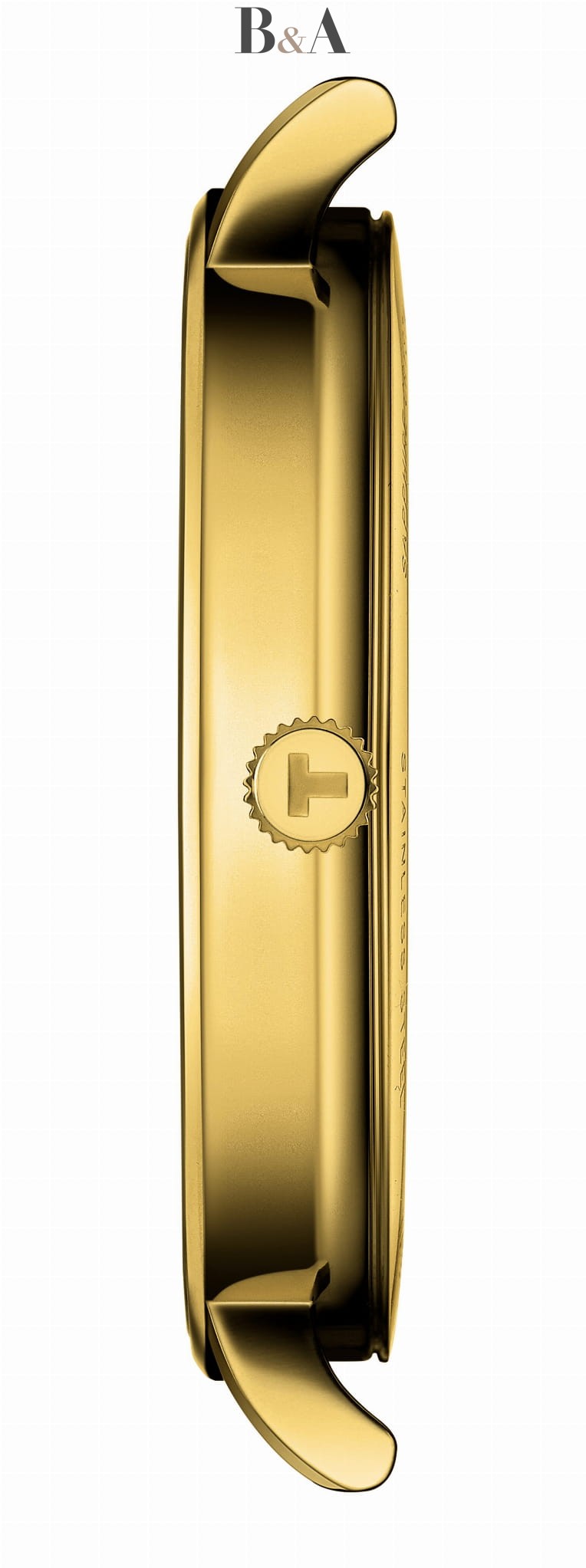 Jednym z najbardziej charakterystycznych elementów zegarka Tissot Everytime Gent jest jego złocona koperta o średnicy 40 mm, która nadaje mu wyrazistego charakteru. Połączenie klasycznej stylistyki z nowoczesnymi detalami sprawia, że zegarek doskonale wpisuje się w różnorodne stylizacje – od biznesowych po casualowe. Jego subtelny design wyróżnia się harmonią proporcji, co czyni go idealnym wyborem dla mężczyzn, którzy cenią elegancję w najczystszej formie.