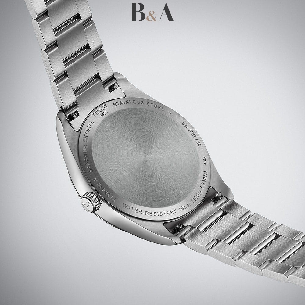 Tissot PR 100 T150.410.11.041.00 jest wodoszczelny do głębokości 100 metrów (10 barów), co czyni go idealnym towarzyszem zarówno na co dzień, jak i podczas bardziej wymagających aktywności.