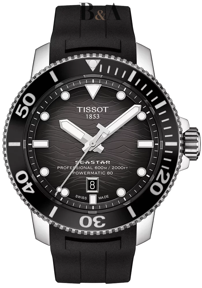 Niezawodność nawet w ekstremalnych warunkach i niezapomnianych przygodach, gdziekolwiek tylko zechcesz zapewni Ci Tissot Seastar 2000 Professional Powermatic 80. Zaawansowany technicznie zegarek, który sprawdzi się w każdych warunkach użytkowania, niezależnie od tego, czy zabierzesz go w podróż po miejskiej dżungli, czy setki metrów pod powierzchnię wody. Dzięki eleganckiemu i stylowemu designowi jest to uniwersalny zegarek, który możesz nosić na co dzień. Jego zaawansowanie techniczne gwarantuje wodoodporności do 60 barów (600 m / 2000 stóp) co potwierdza posiadanie przez ten model certyfikatu zegarka nurkowego z normą ISO 6425 (2018). Tissot Seastar posiada obrotowy pierścień koperty, zakręcaną koronkę, automatyczny zawór helowy oraz wodoodporny pasek z czarnej gumy i niebieskiego materiału. Motyw fal na czarnej lub gradientowej tarczy nawiązuje do niezwykłych walorów technicznych tego nurkowego modelu ale także podkreśla jego niesamowite piękno.