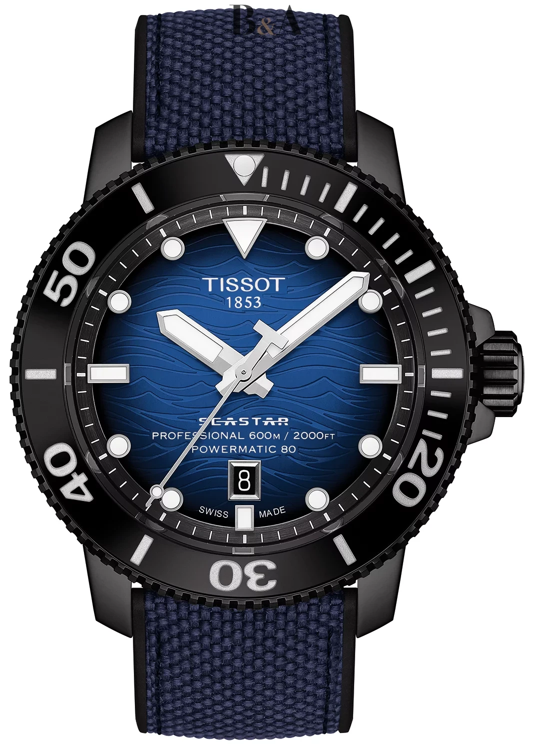 Niezawodność nawet w ekstremalnych warunkach i niezapomnianych przygodach, gdziekolwiek tylko zechcesz zapewni Ci Tissot Seastar 2000 Professional Powermatic 80. Zaawansowany technicznie zegarek, który sprawdzi się w każdych warunkach użytkowania, niezależnie od tego, czy zabierzesz go w podróż po miejskiej dżungli, czy setki metrów pod powierzchnię wody. Dzięki eleganckiemu i stylowemu designowi jest to uniwersalny zegarek, który możesz nosić na co dzień. Jego zaawansowanie techniczne gwarantuje wodoodporności do 60 barów (600 m / 2000 stóp) co potwierdza posiadanie przez ten model certyfikatu zegarka nurkowego z normą ISO 6425 (2018). Tissot Seastar posiada obrotowy pierścień koperty, zakręcaną koronkę, automatyczny zawór helowy oraz wodoodporny pasek z czarnej gumy i niebieskiego materiału. Motyw fal na czarnej lub gradientowej tarczy nawiązuje do niezwykłych walorów technicznych tego nurkowego modelu ale także podkreśla jego niesamowite piękno.