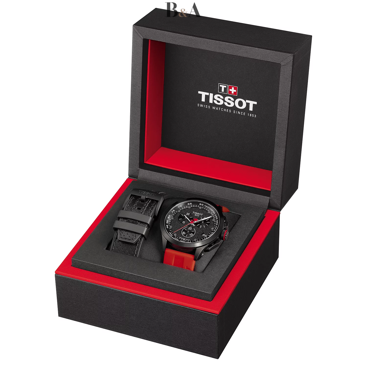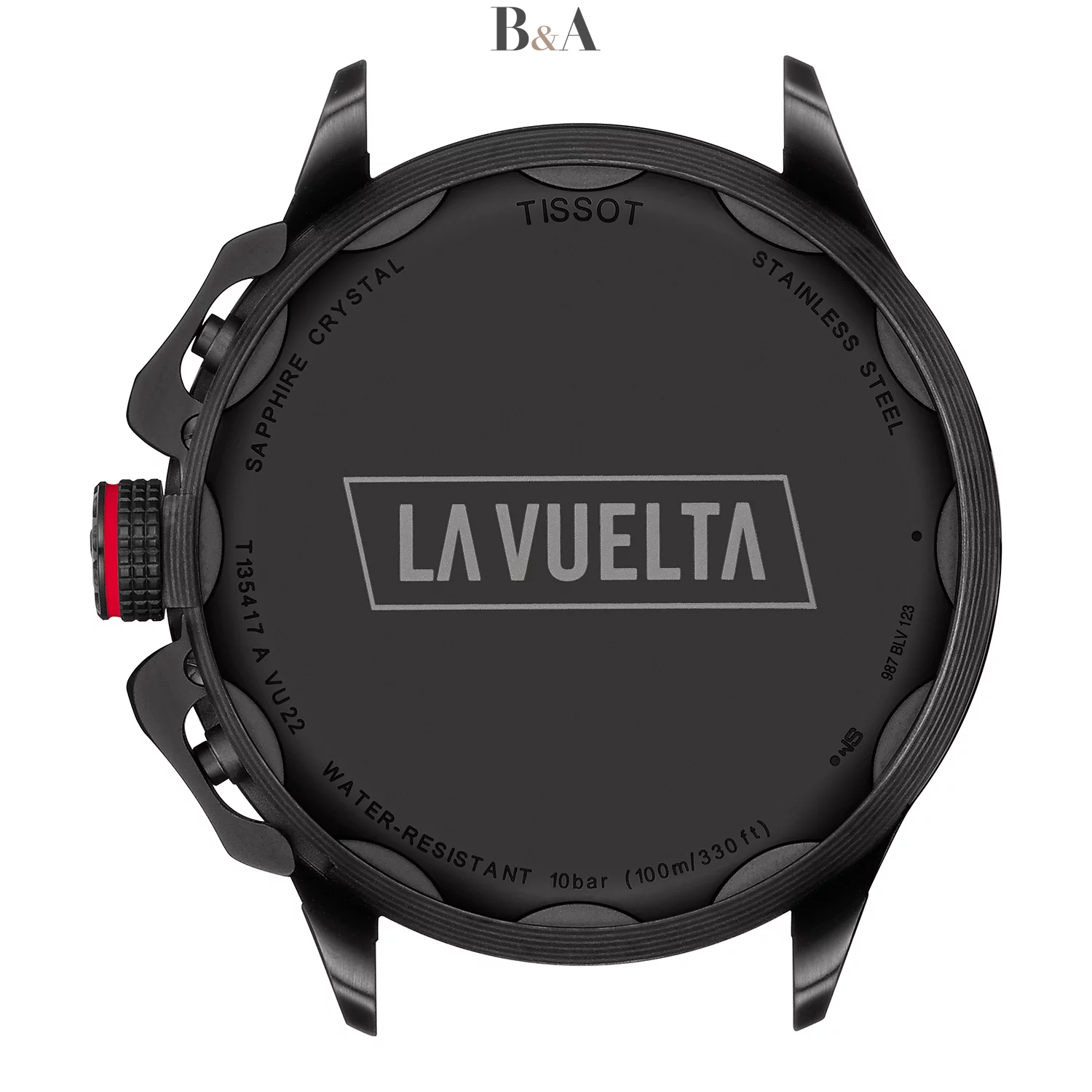 Doceniaj mistrzów kolarstwa z modelem Tissot T-Race Cycling 2023 Vuelta a Espana Edition, 45-milimetrowym chronografem z efektowną czarną tarczą. Ten wyprodukowany w Szwajcarii czasomierz, łączy w sobie design inspirowany wyścigami rowerowymi, odważne czerwone akcenty i praktyczność dwóch wymiennych pasków — silikonowego w wyścigowym kolorze i eleganckiego, perforowanego paska skórzanego. Dzięki detalom o tematyce rowerowej, takim jak przyciski przypominające dźwignię hamulca i wskazówki imitujące szprychy, ten zegarek staje się idealną propozycją dla miłośników kolarstwa. Daj się ponieść emocjom związanym z La Vuelta, złóż zamówienie i pokaż swoją pasję do ekscytującego świata kolarstwa dzięki temu niezwykłemu zegarkowi zaprojektowanemu dla prawdziwych entuzjastów tego sportu.