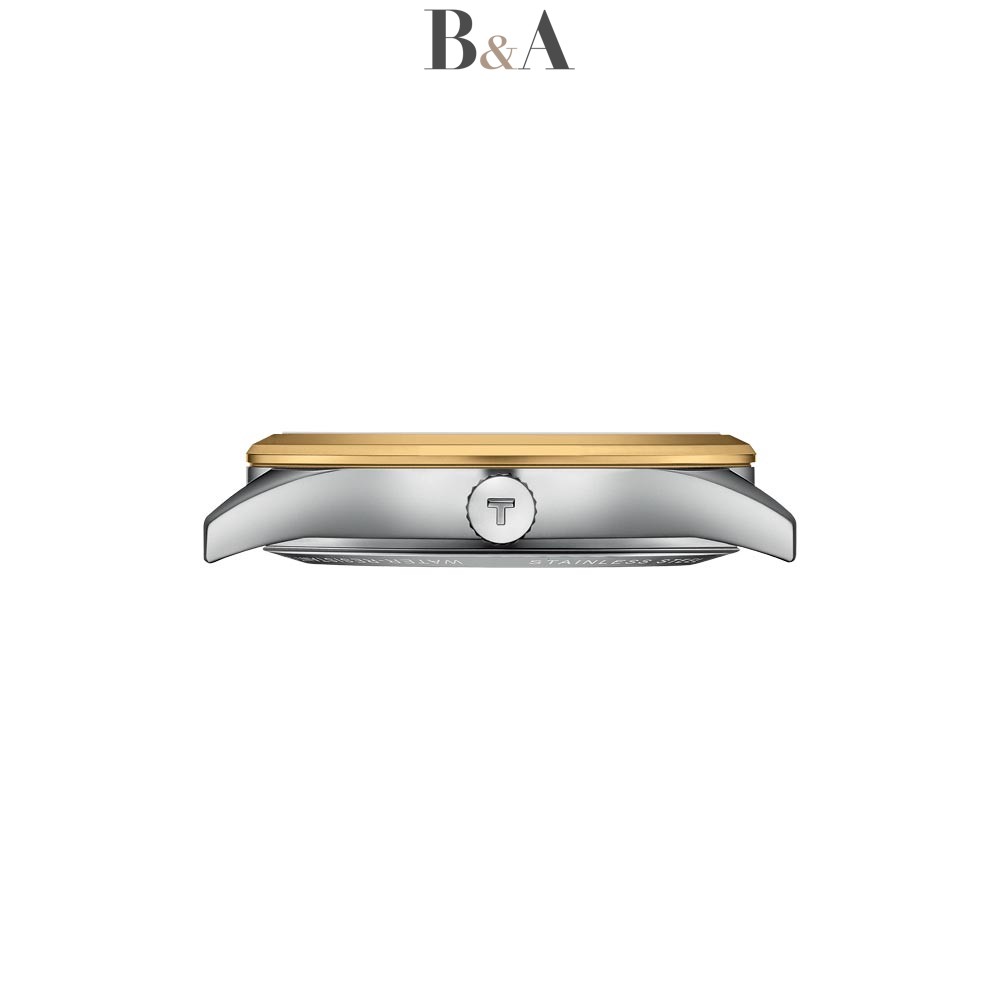 Model T158.407.22.031.00 wyposażony jest w bransoletę ze stali nierdzewnej 316L z powłoką PVD w odcieniu żółtego złota. Zapięcie motylkowe z przyciskami zapewnia wygodę i bezpieczeństwo noszenia. Co więcej, zegarek posiada system „quick release” umożliwiający łatwą wymianę paska.