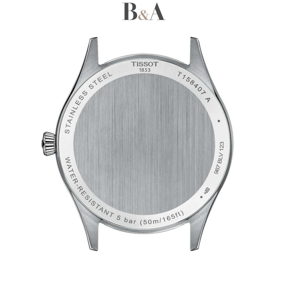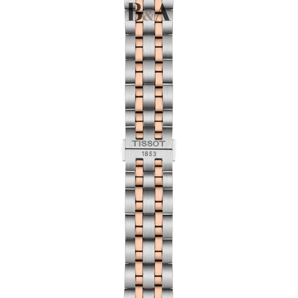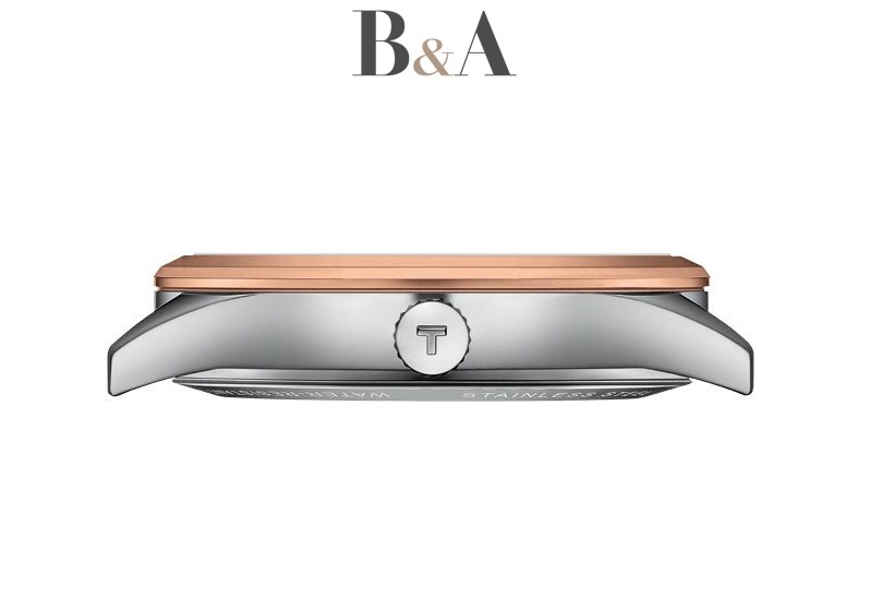 Model T158.407.22.031.01 został wyposażony w bransoletę ze stali nierdzewnej 316L z różowozłotą powłoką PVD, zamkniętą motylkowym zapięciem z przyciskami. Dodatkowo zastosowano system szybkiej wymiany paska („quick release”), co pozwala łatwo dostosować wygląd zegarka do różnych stylizacji.