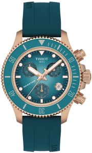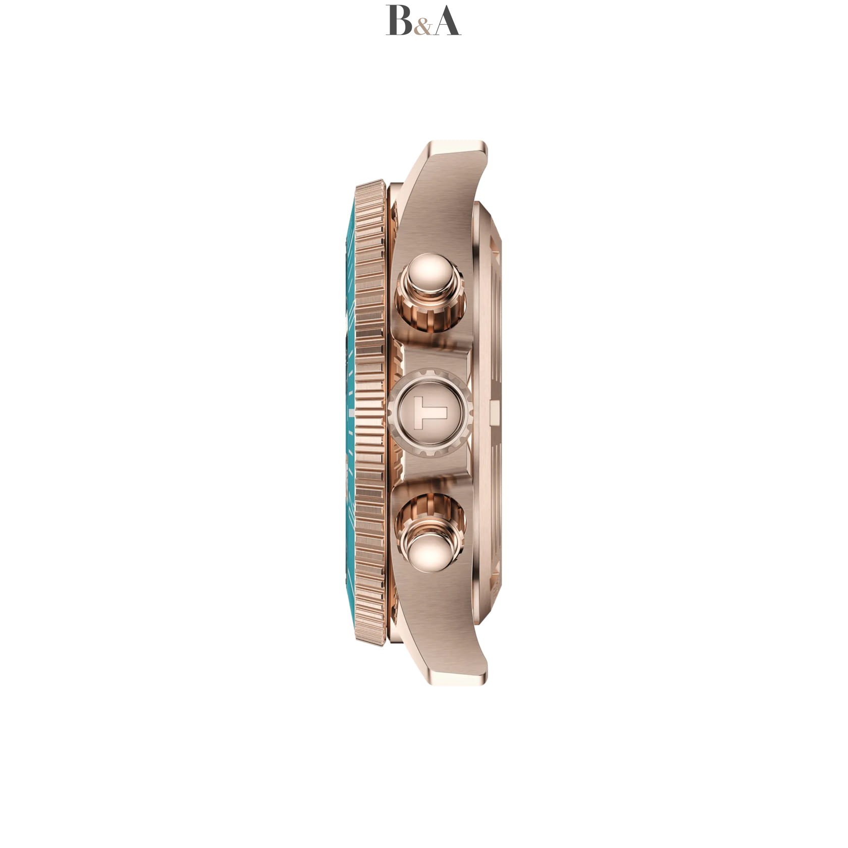 Jeśli szukasz zegarka nurkowego, który łączy funkcjonalność, nowoczesny design i niezawodność, Tissot Seastar 1000 Quartz Chronograph 38mm to doskonały wybór. Jego turkusowa tarcza w połączeniu z różowo-złotą kopertą nadaje mu wyjątkowy charakter, który przyciąga wzrok i podkreśla styl właściciela.