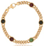 Zdobiona szafirami, rubinami i szmaragdem. Długość 19 cm, bez możliwości regulacji. Bransoletka ocechowana, wykonana we Włoszech.