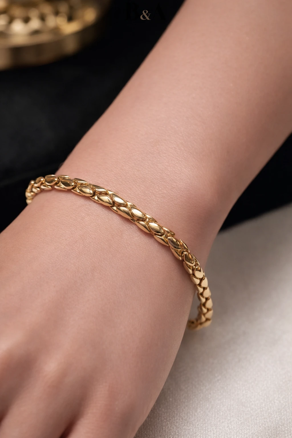 Wykonana z złota próby 585 (14-karatowego), bransoletka łączy w sobie wszystko, czego oczekuje się od biżuterii premium: