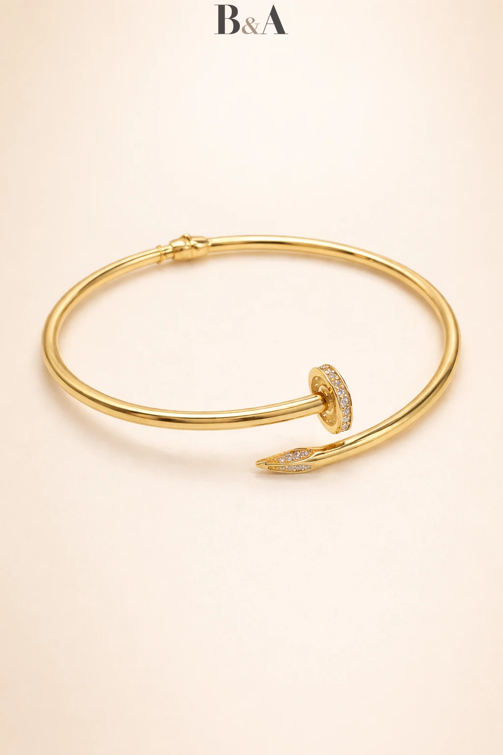 Wykonana z wysokiej jakości złota próby 585, zachwyca perfekcyjnie wypolerowaną powierzchnią i elegancką linią. Jej forma inspirowana industrialnym motywem gwoździa została przekształcona w luksusowy symbol nowoczesnej kobiety — silnej, świadomej i stylowej.