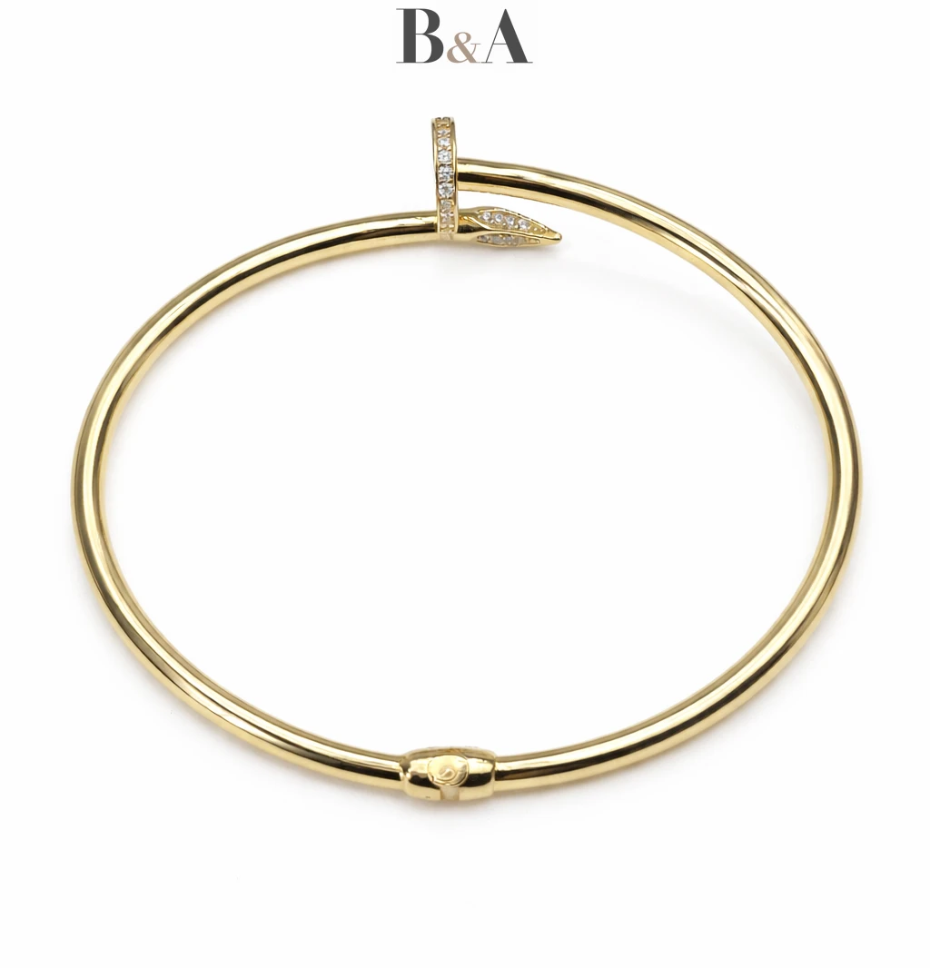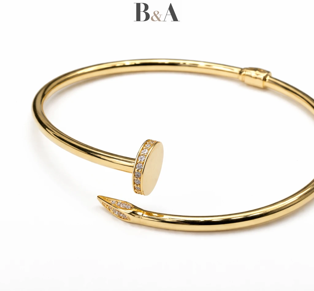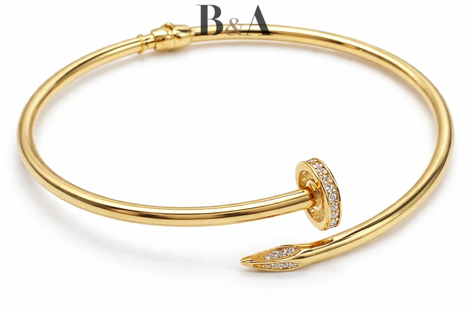 Ta złota bransoletka w motywie gwoździa to właśnie taki model. Odważna w swojej prostocie, minimalistyczna w formie, a jednocześnie niezwykle wyrazista. Biżuteria, która nie potrzebuje ozdób, by przyciągać spojrzenia.